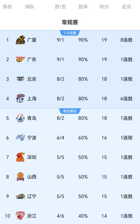 - CBA排名榜:辽宁终结连败回升第八,新疆、广州皆客场加时险胜